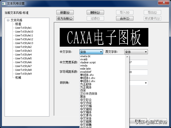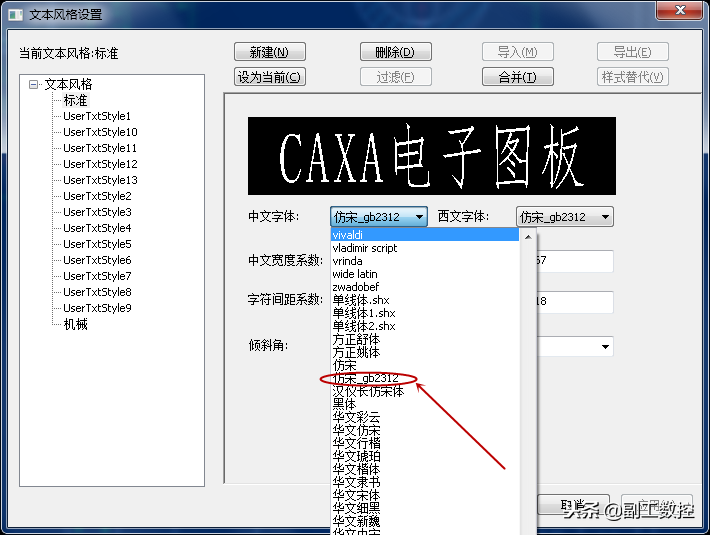 “仿宋_GB2312”是机械制图当中应用最为广泛的字体之一,以其形式的俊美,结构和符号的清晰而深受广大制图工作者的喜爱,通常被用作机械制图标准字体。我们安装一款制图软件后可能在字体格式中寻找不到“仿宋_GB2312”字体,这里我们以CAXA电子图板为例,如下图: