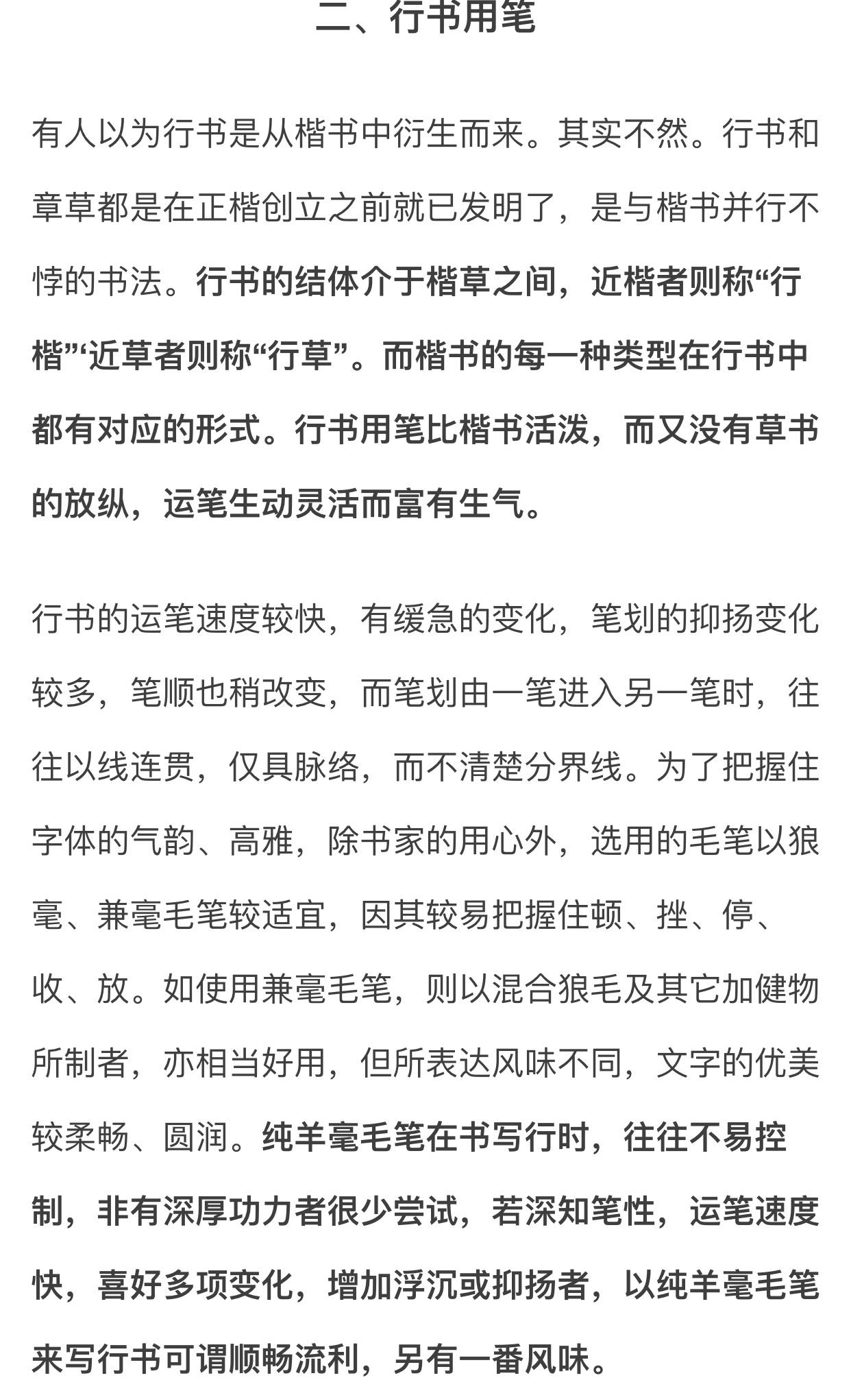 行书是在隶书的基础上发展起源的,介于楷书、草书之间的一种字体,是为了弥补楷书的书写速度太慢和草书的难于辨认而产生的。“行”是“行走”的意思,因此它不像草书那样潦草,也不像楷书那样端正。实质上它是楷书的草化或草书的楷化。楷法多于草法的叫“行楷”,草法多于楷法的叫“行草”。