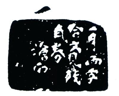 吴昌硕的《一月安东令》印,其款识云:“一月”两字合文见残瓦券。沧石。