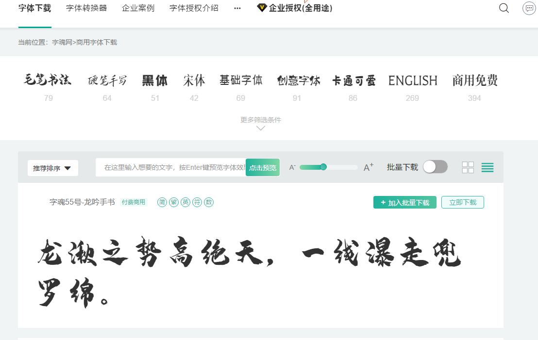 点击进入之后可以看到字体详情,需要的话直接点击【立即下载】,就可以把字体下载到电脑上使用。