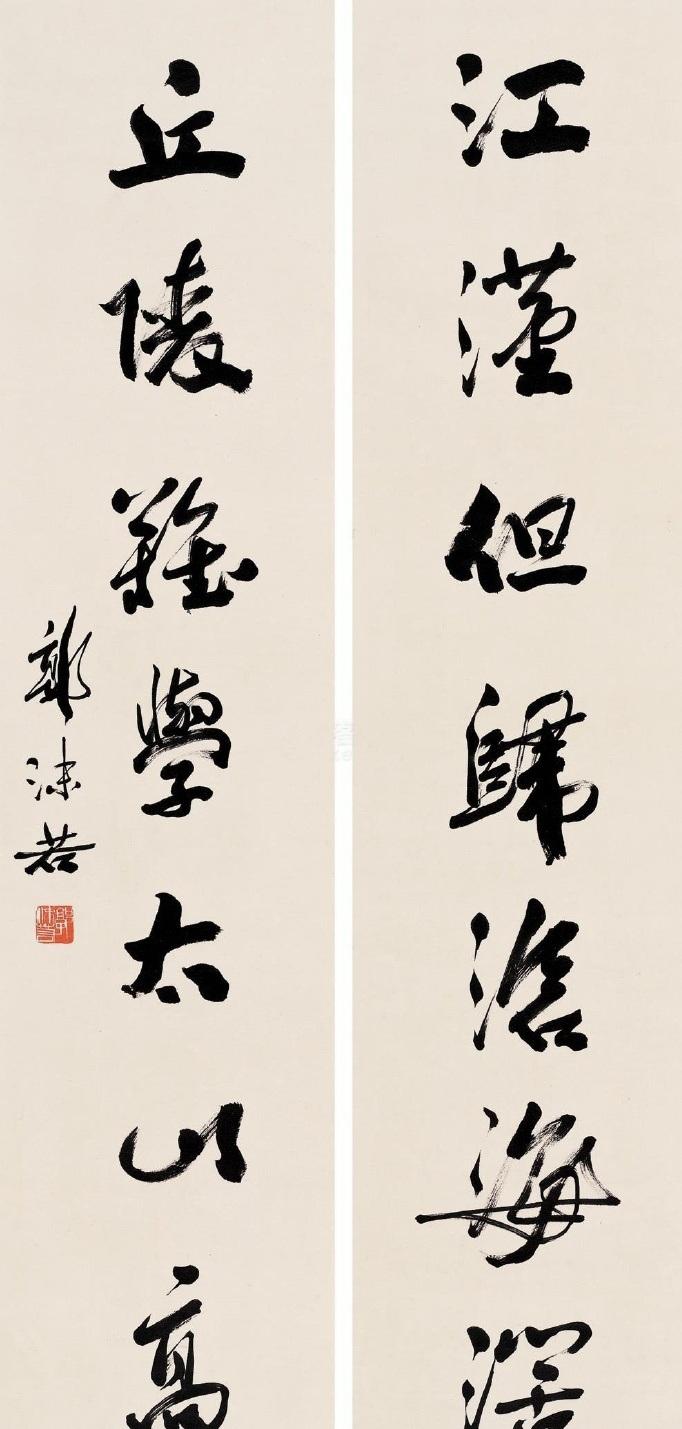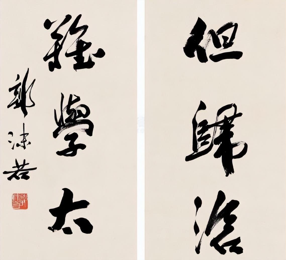 以前大家见过郭沫若的《七言联》,这一个作品字数不多,但充分代表着他书法最有魅力的地方。