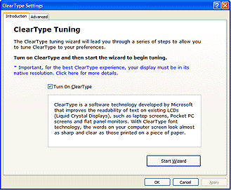 XP 用户还可以通过安装微软提供的 ClearType 设置工具(ClearType Tuner PowerToy)来获得对 ClearType 效果的更多控制。