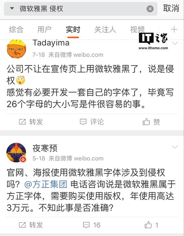 去年或近期一段时间,很多人在网络上反馈自己在淘宝海报等使用微软雅黑字体收到了方正的被诉侵权,并且有称若使用微软雅黑字体宣传,年使用费高达3万元。