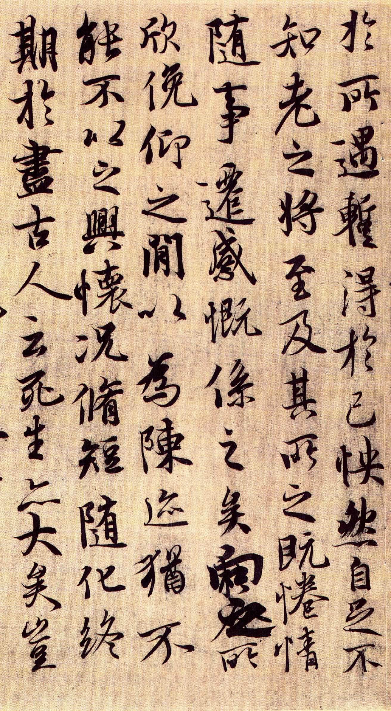 《兰亭序》笔法高妙,点画粗细分明,粗的健壮而不臃肿,细有清秀而不纤弱,文而不华,质而不野,不激不厉,温文尔雅,刚柔相济,线条变化灵活,点画凝练,书体以散求正,具有敬侧、揖让、对比的间架美感,成为“中和之美”书风的楷模!