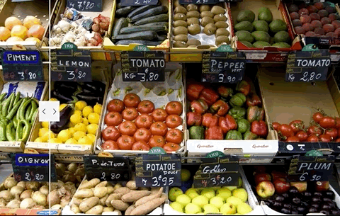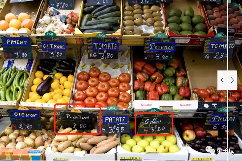 还能直接实现风格替换 ,让蔬果店里的所有印刷字都变成手写体:
