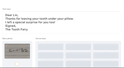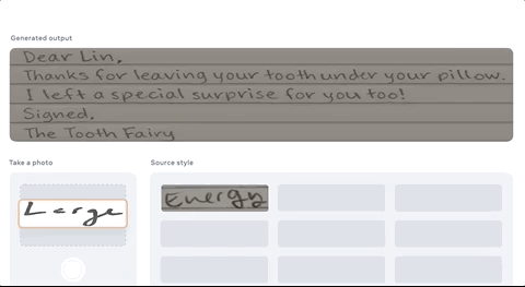 只需输入一段文本内容,加上你的笔迹,1个单词即可,它就能生成“手写版”。