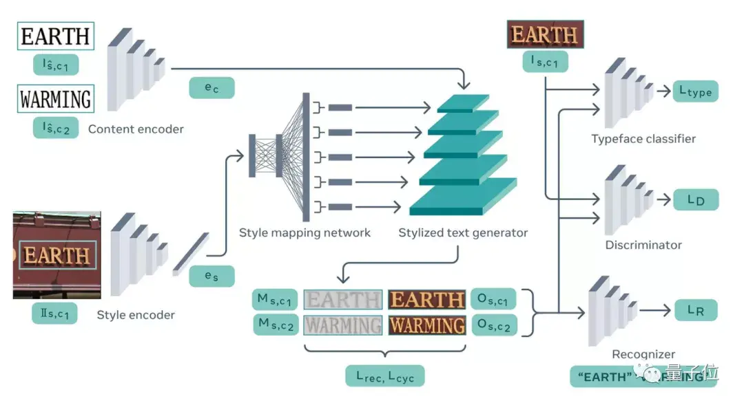 例如,在文本识别上,让TextStyleBrush生成文本图像后,模型会用一个预训练文本识别结构来“判断”图像的文字内容,并给它打分。