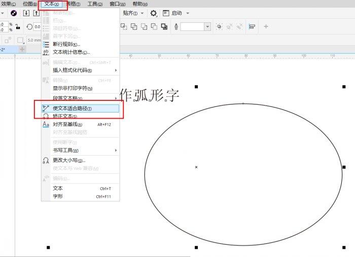 2.选中椭圆和文本,单击文本-使文本适合路径