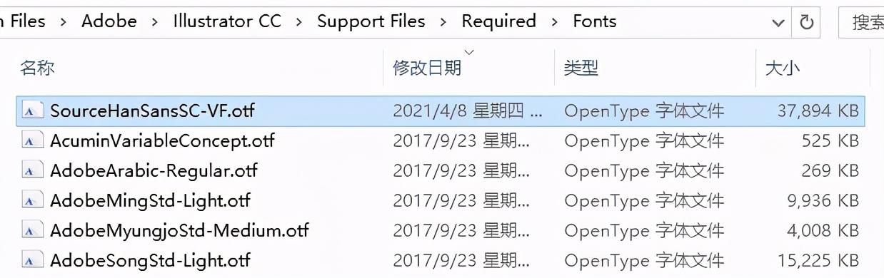 Adobe\Illustrator CC\Support Files\Required\Fonts