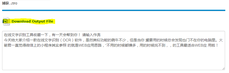 第三步:修改一下错字后,点击“Download Output File”就可以下载转换后的文件!