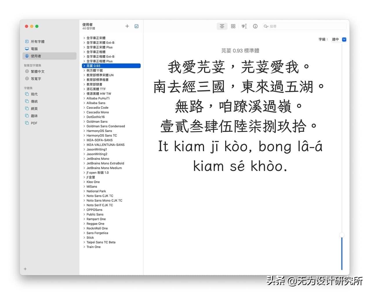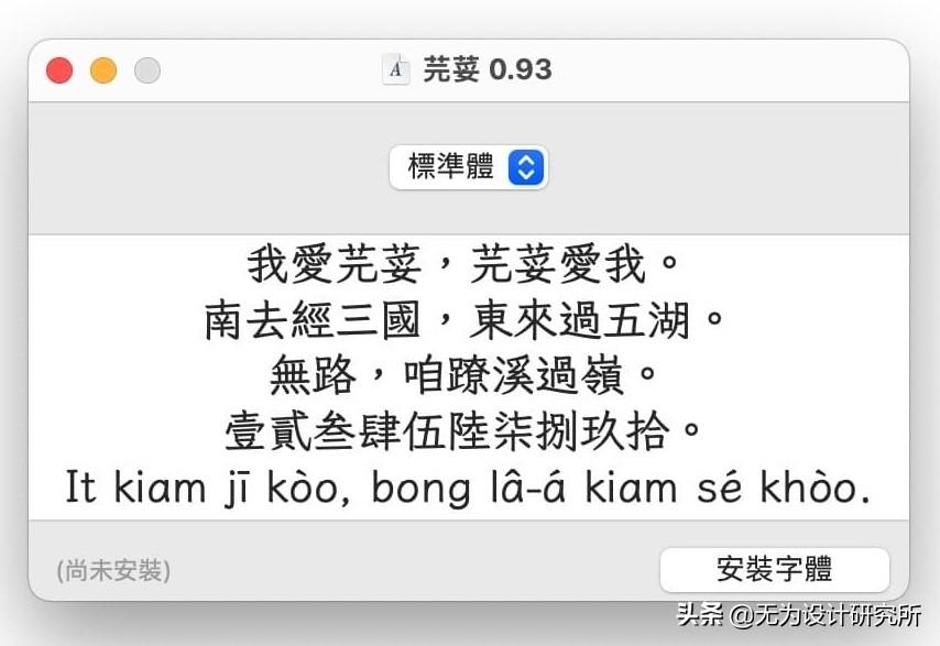 下载后点选字体 .ttf 文件进行字体安装,我是使用 macOS 开启后会打开「字体簿」应用程序,除了预览以外点选「安装字体」就能将它安装到操作系统、在其他的应用程序使用。