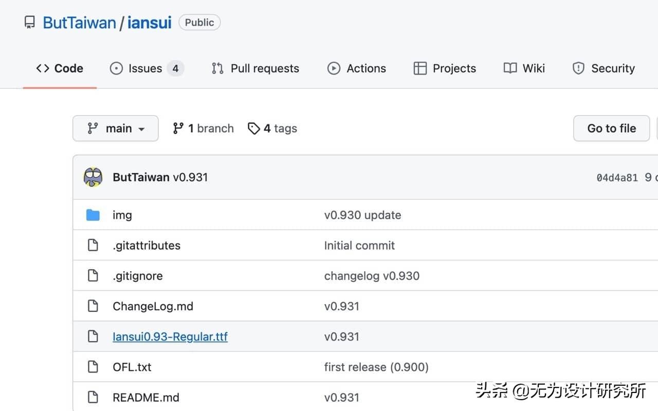 开启「芫荽」(Iansui)的 GitHub 项目页面,从档案列表找到 .ttf 字型文件,写这篇文章时文件名为 Iansui0.93-Regular.ttf,点选文件后再按下右侧「Download」即可下载文件。