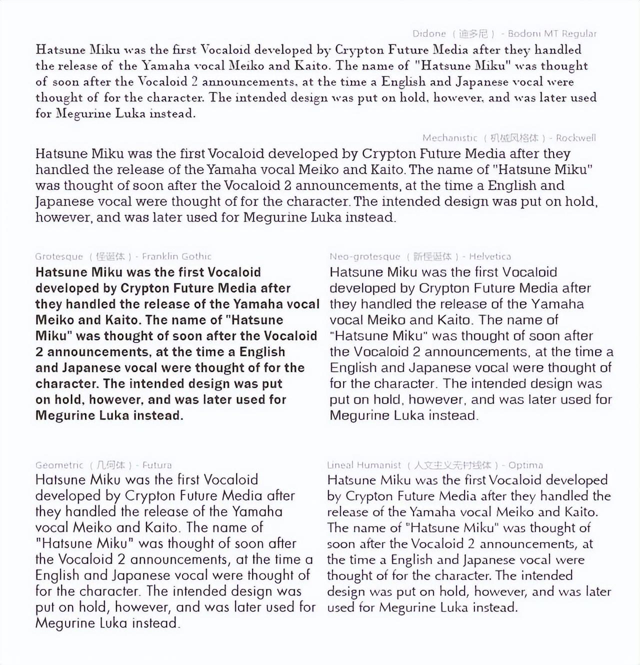 由于 Grotesque(怪诞体)是最早的无衬线体,所以很多地方也把无衬线体称为 Grotesque(怪诞体)或 Grotesk(德语怪诞体)。
