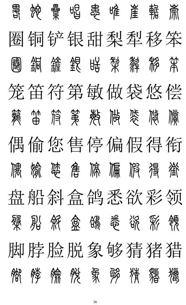 古篆书楷书对照字贴