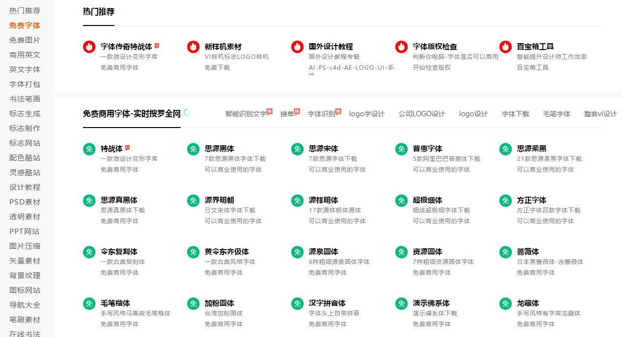 这个网站我真的用了有很久了,里面的字体种类分为了黑体、宋体、楷体、圆体、创意字体等多种。