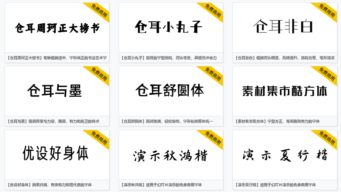 这个网站收集了很多个人的字体,如果想要一些免费商用字体的话可以点击免费商用板块,就可以看到很多免费好看的字体了。
