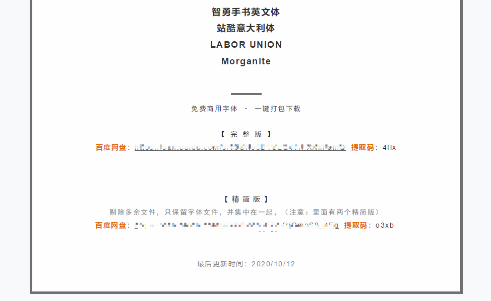 进入相应的字体后,会有下载的具体链接,就可以直接进行提取了,还分成了完整版和精简版,非常贴心。