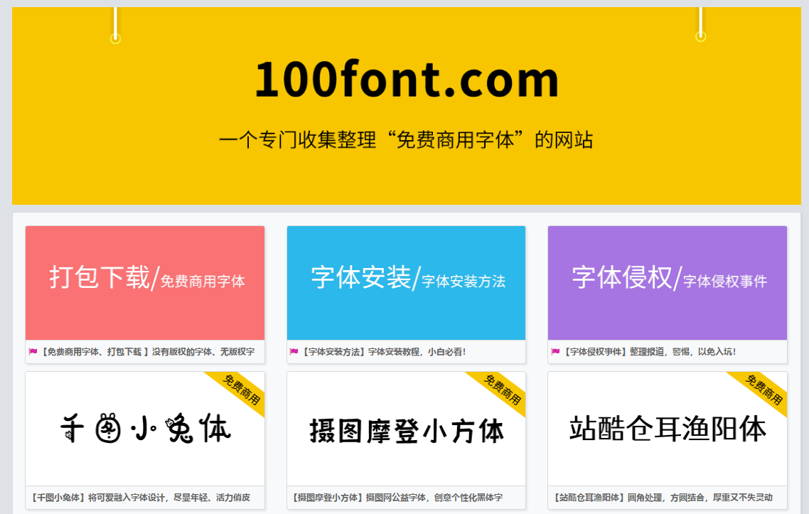这个网站也是我很喜欢的一个,这是一个专门收集整理"免费商用字体"的网站,你可以在这里打包下载字体,查看字体安装方法等等。