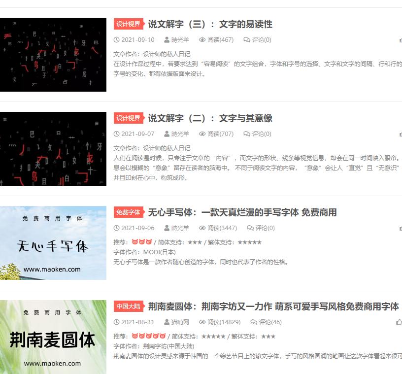 同时这个网站还会更新一些字体的文章和信息,大家可以从这个网站上了解到很多设计知识和干货: