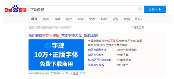 记者打开百度搜索“字体侵权”,一下子跳出1430万条的消息,而最常受伤的是淘宝卖家。