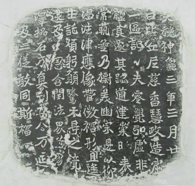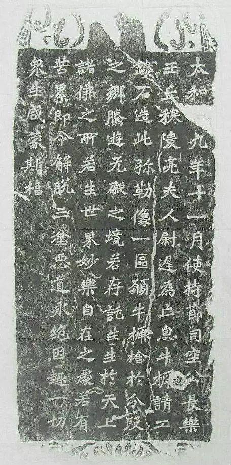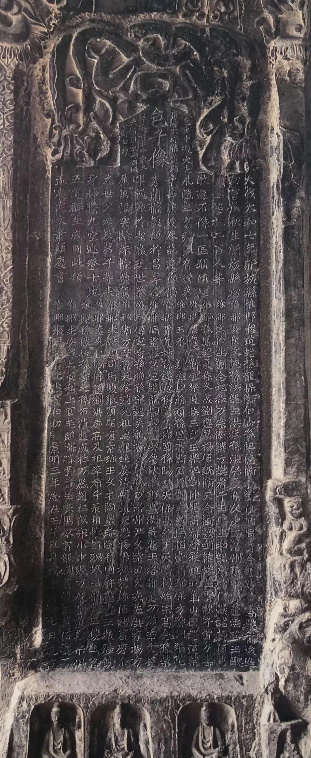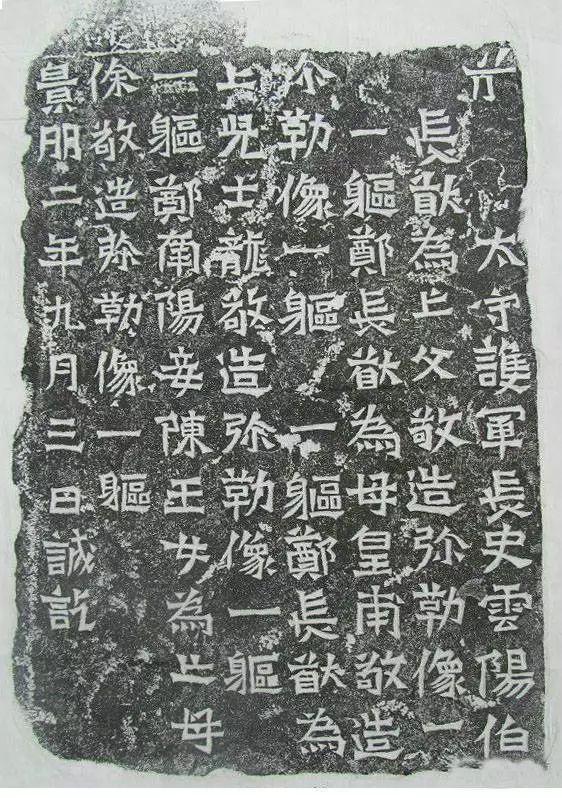 犹存隶意。景明三(502)年五月刻。古阳洞北壁。有翻刻本,第12行'顾'字左上缺一点;末行'像'字缺二笔。