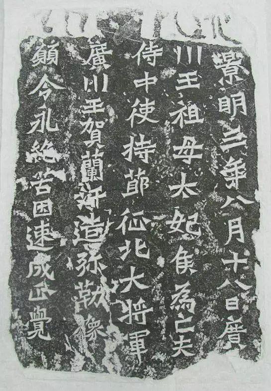 龙门二十品之《太妃侯造像题记》,全称《广川王祖母太妃侯造像题记 》。景明四(503)年七月刻。广川王祖母太妃侯氏在为亡夫广川王贺兰汗造像的第二年,又为其幼孙,第三代广川王灵遵造弥勒像一躯,倾诉她“孤育幼孙,以绍蕃国”的“冰薄之心”。此碑也在古阳洞窟顶,距其为亡夫所作记碑大约1米左右,碑呈长方形,横卧式。正书,29行,前22行一行6字,字较大;后7行,一行4字,字较小。