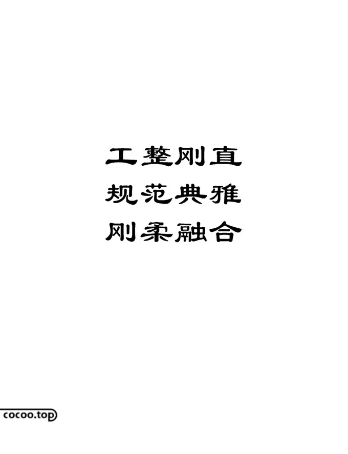 ④楷书。楷书精简和调整了隶书笔法,使其具有笔画简爽,造型规范、形体工整、俊秀的特点,表现出来的大气、宽阔、厚重与包容。