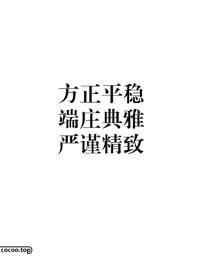 ①宋体。宋体笔画一般横细竖粗,笔触起落有棱有角,起承转合处有装饰,笔形具有横细竖粗、撇如刀、点如瓜子、捺如扫的特征,是书法用笔与刀法相结合而形成的特有的字体风格。方正平稳、端庄典雅、严谨精致,给人以简洁明了之感。
