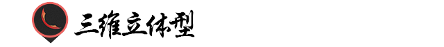 此类字体具有3D效果,空间感和立体感较强。可采用手绘或者电脑软件,通过对字体笔画的结构重组,分解成简单易于操作的字形架构,用正方体或圆柱体或其他较为立体的几何形体替换基本笔画,使笔画之间交叉排列或共用组合,极具视觉张力和设计感。