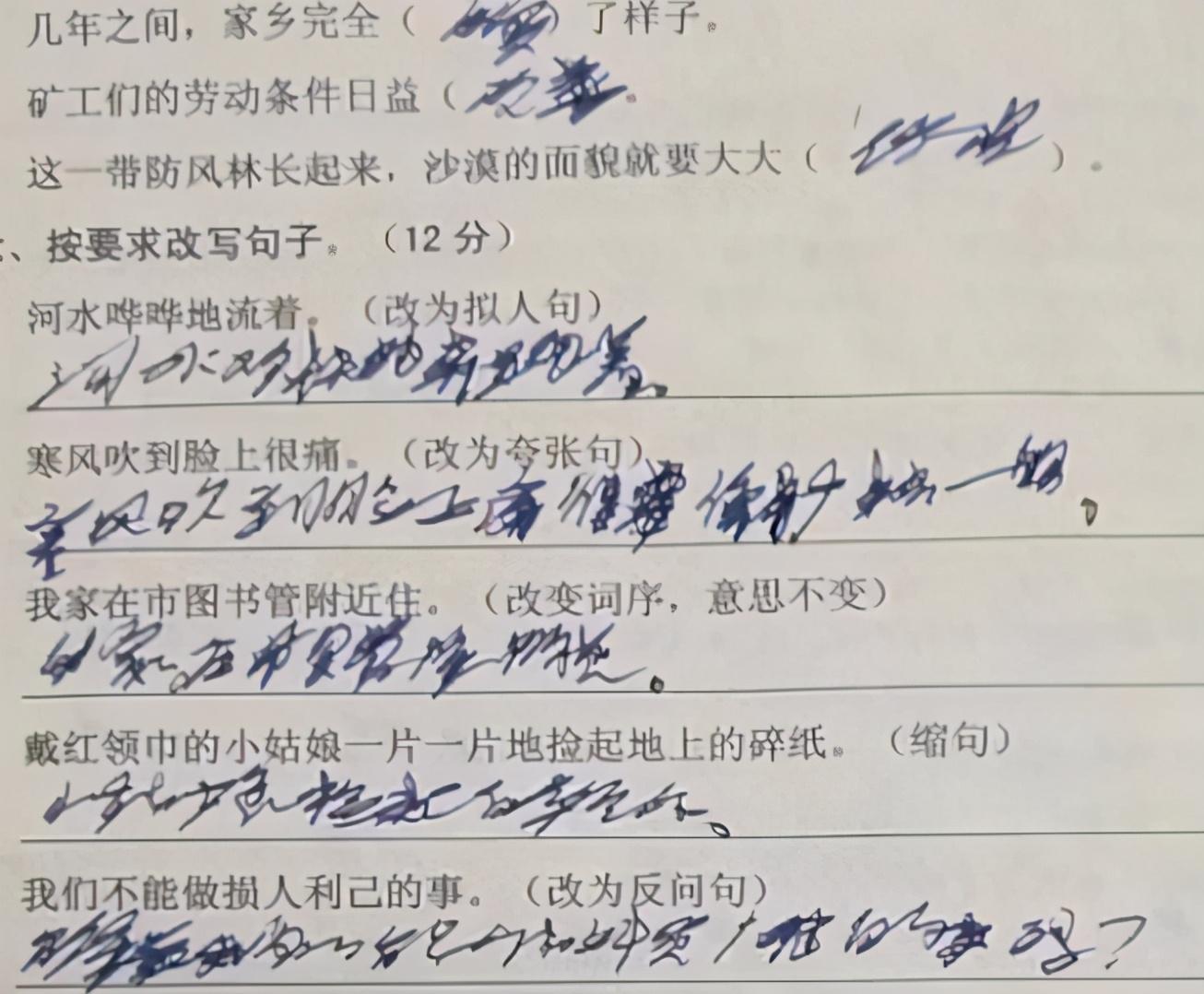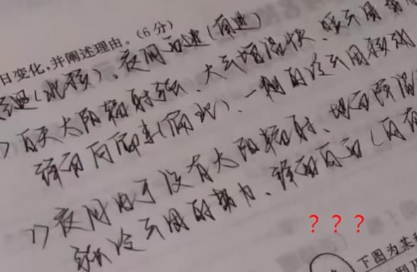 看看上面这张图片,试卷上的字犹如“鬼画符”,老师拿着放大镜都看不清楚,怪不得表示: