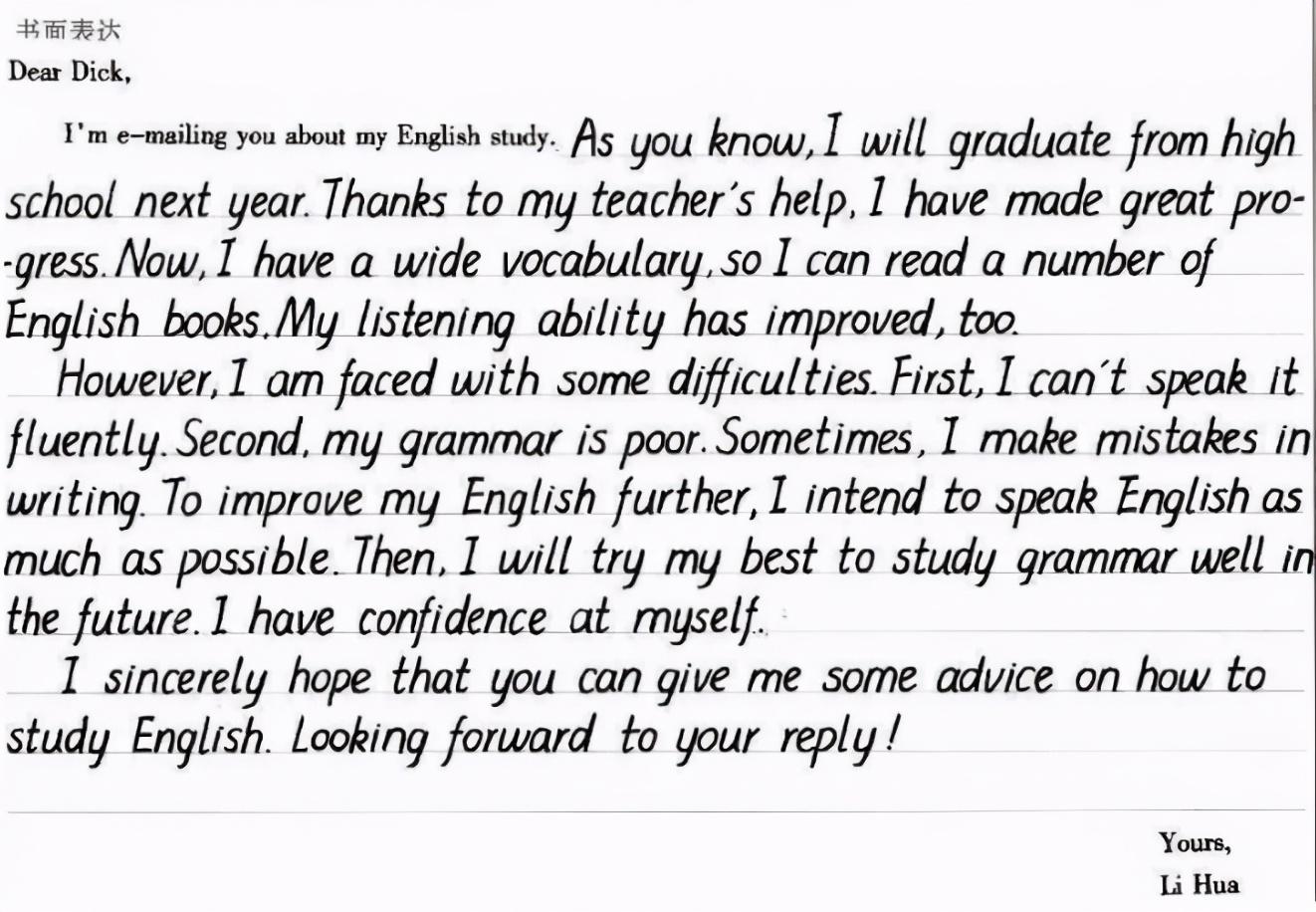 若是英语试卷,小学生适合用衡水字体,卷面整洁,书写速度也快,英语作文肯定分数不低!