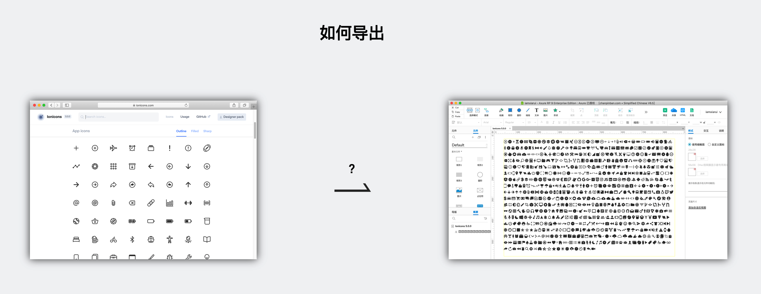 问题 1:很难找到其他全面的图标字体库文件问题 2:系统字体库中只能单个复制,无法批量复制,工作量太大问题 3:svg/png 图片下载后无法随意改变图标颜色或大小,不方便制作交互样式所以这些问题的出现产生了一个需求:如何将图标字体中的所有字体批量导出到 Axure ,变成一个个可以直接编辑的字体图标?