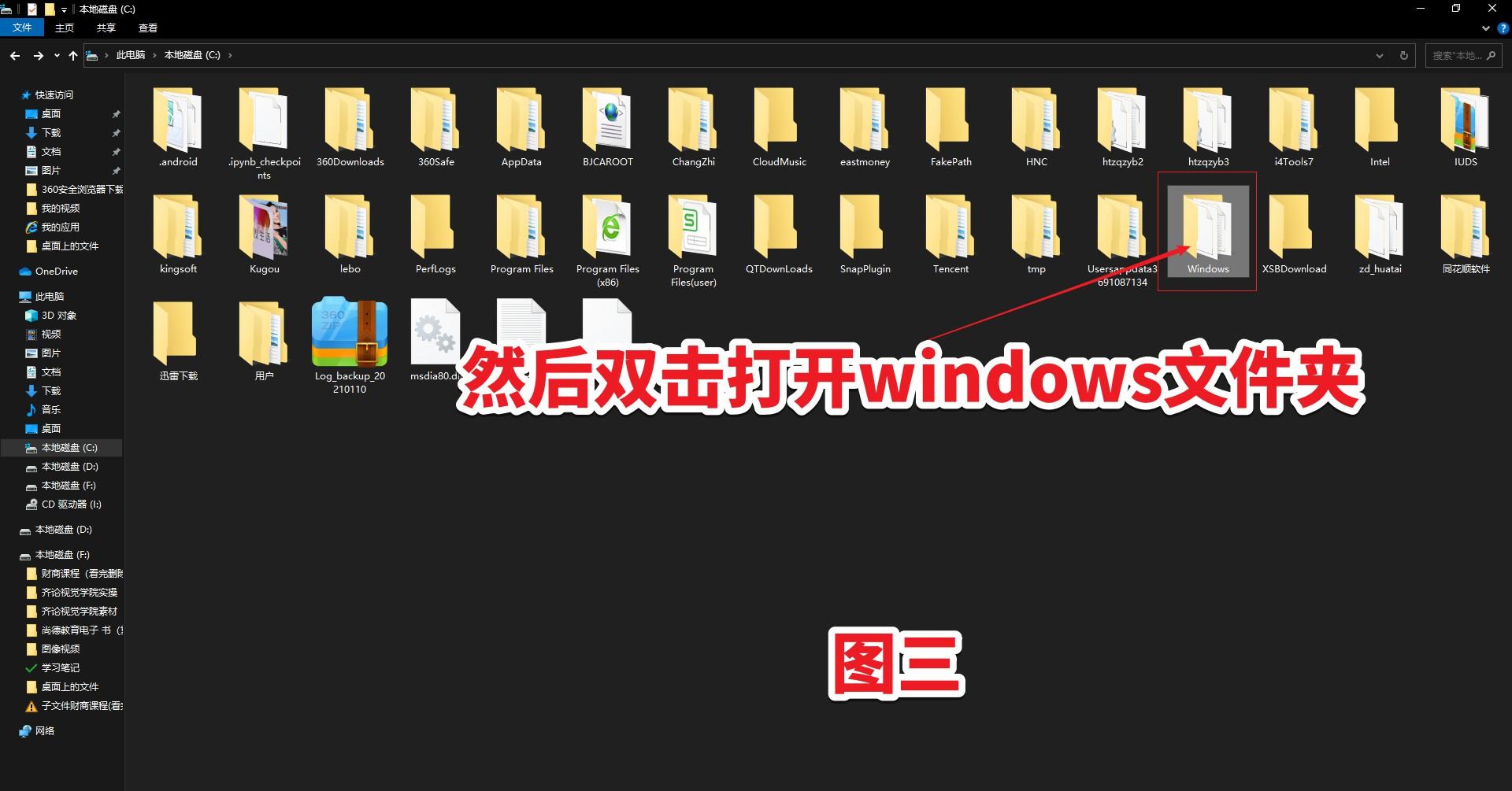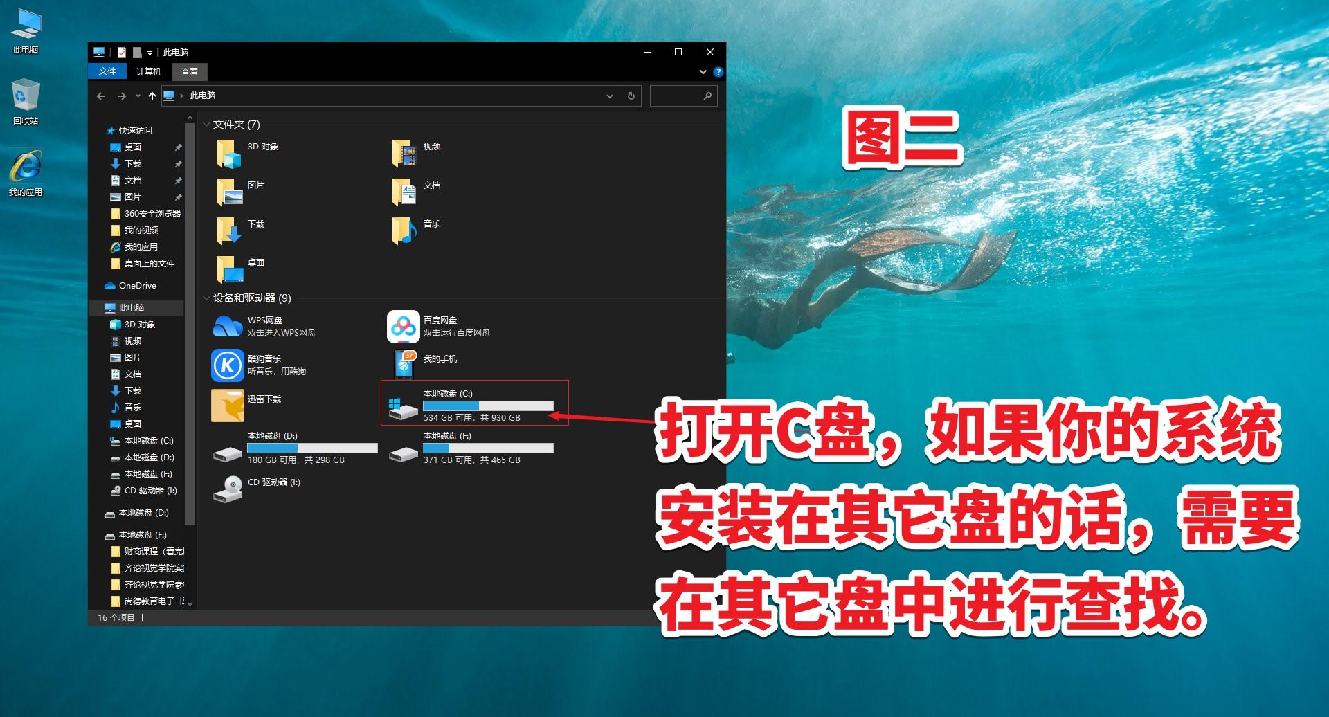 打开C盘,如果你的系统安装在其它盘的话,需要在其它盘中进行查找。