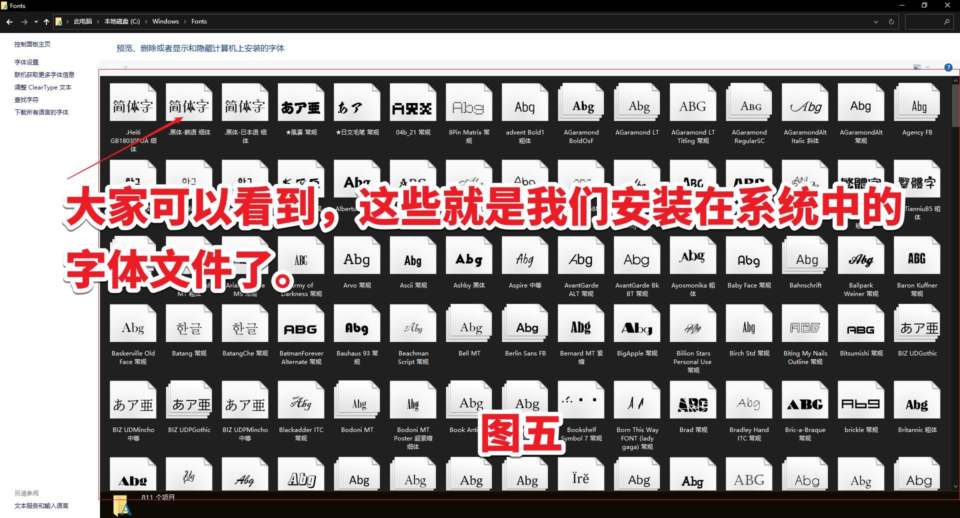 大家可以看到,这些就是我们安装在系统中的字体文件了。