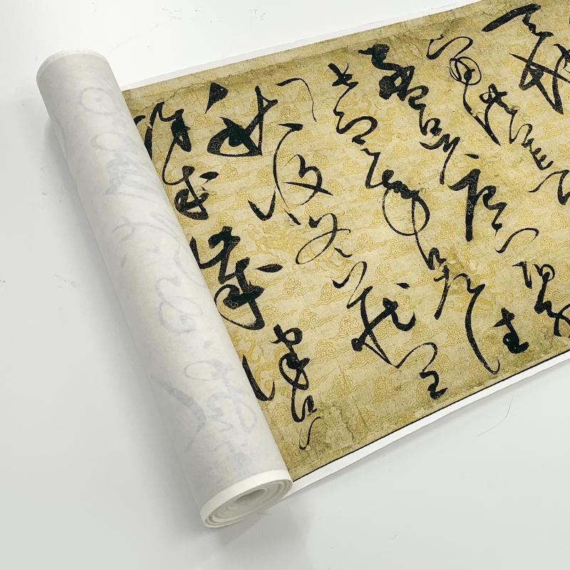 我们通过多方找寻,将藏于辽博的这件《草书千字文》,按照原作大小进行1:1复制,还原出跟原作毫无二致的作品,字字与真迹无二。