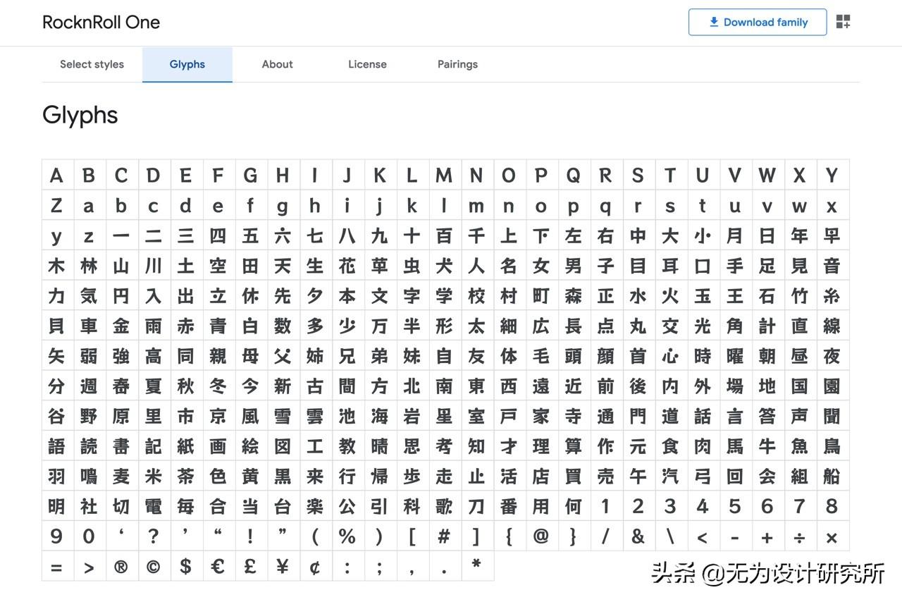 如果是 Google Fonts 页面可以直接线上测试不同的范例文字、查看字元表或点选页面右上角的按钮下载字体档案。