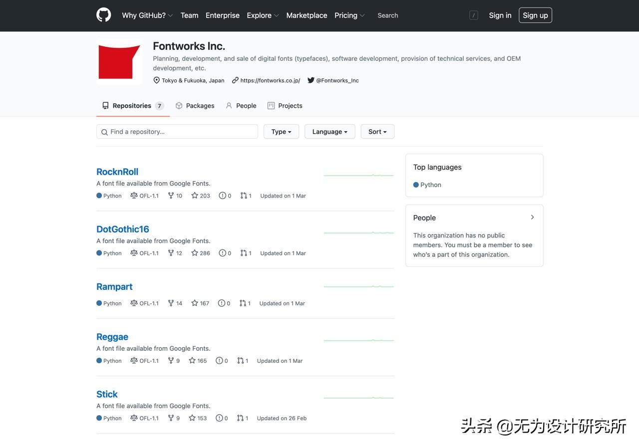 开启 Fontworks 的 GitHub 页面,可以看到和 Google Fonts 合作释出的八种字型。