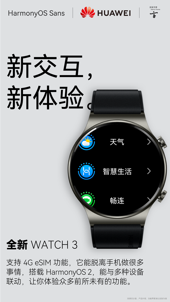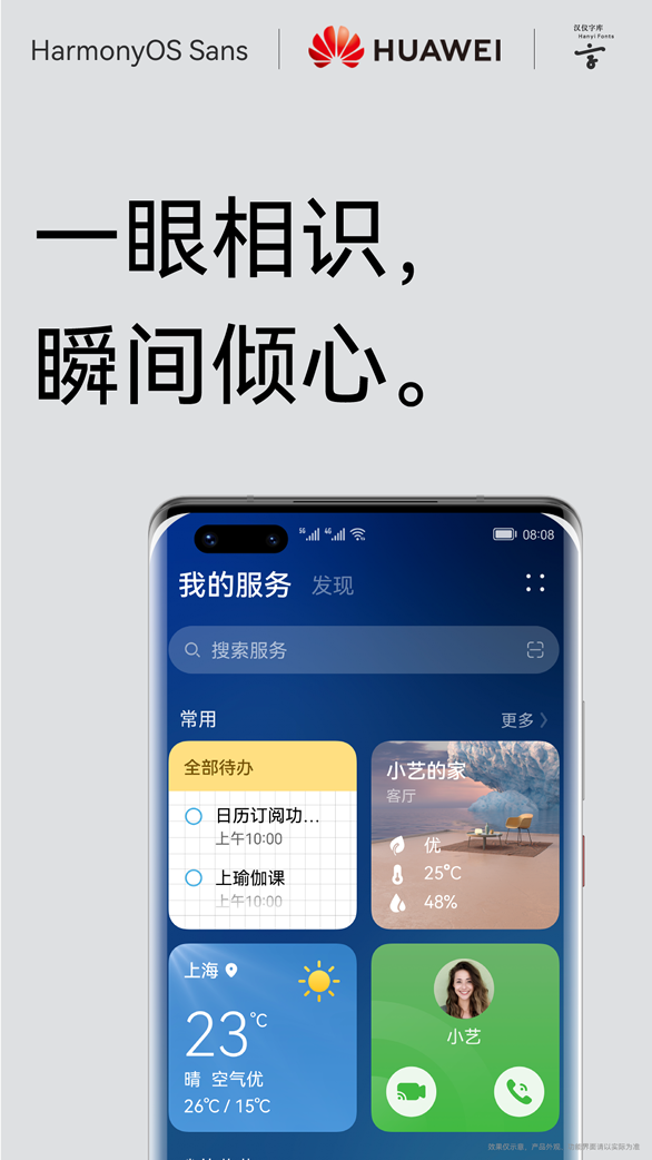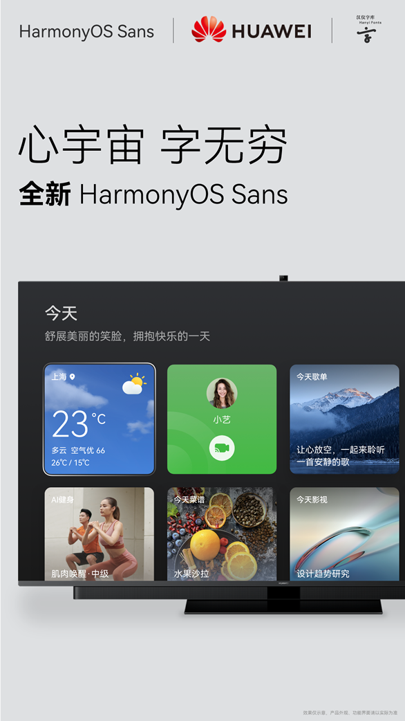 基于华为全球化视野以及多元复杂的应用场景,华为和汉仪字库字体设计团队聚焦于 HarmonyOS Sans 的功能性和普适性,呈现出一款多语言的无级可变字体,助力华为构建万物互联的智能世界。