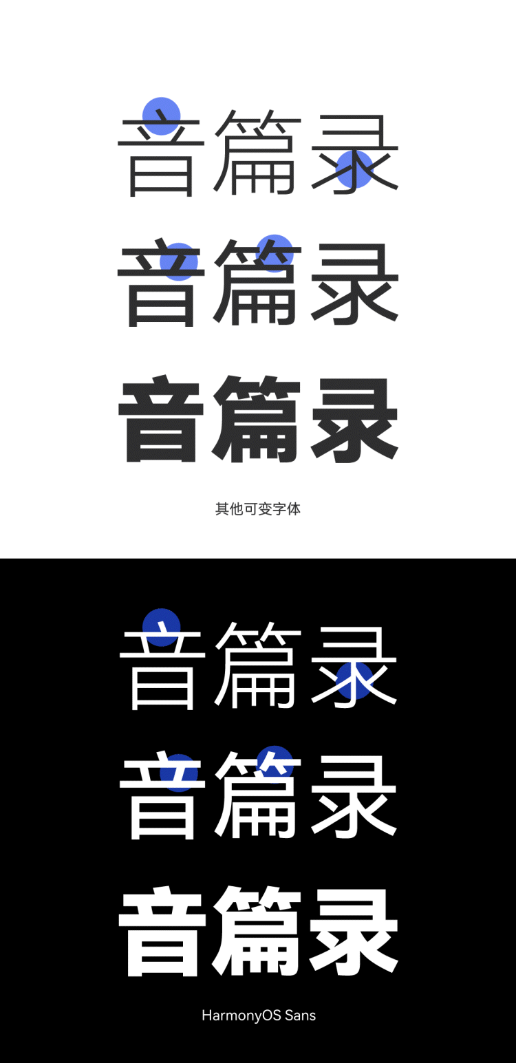 在保障字体功能的前提下,相较其他系统字体,HarmonyOS Sans 的独特是在人文感和现代感中找到了新的平衡。