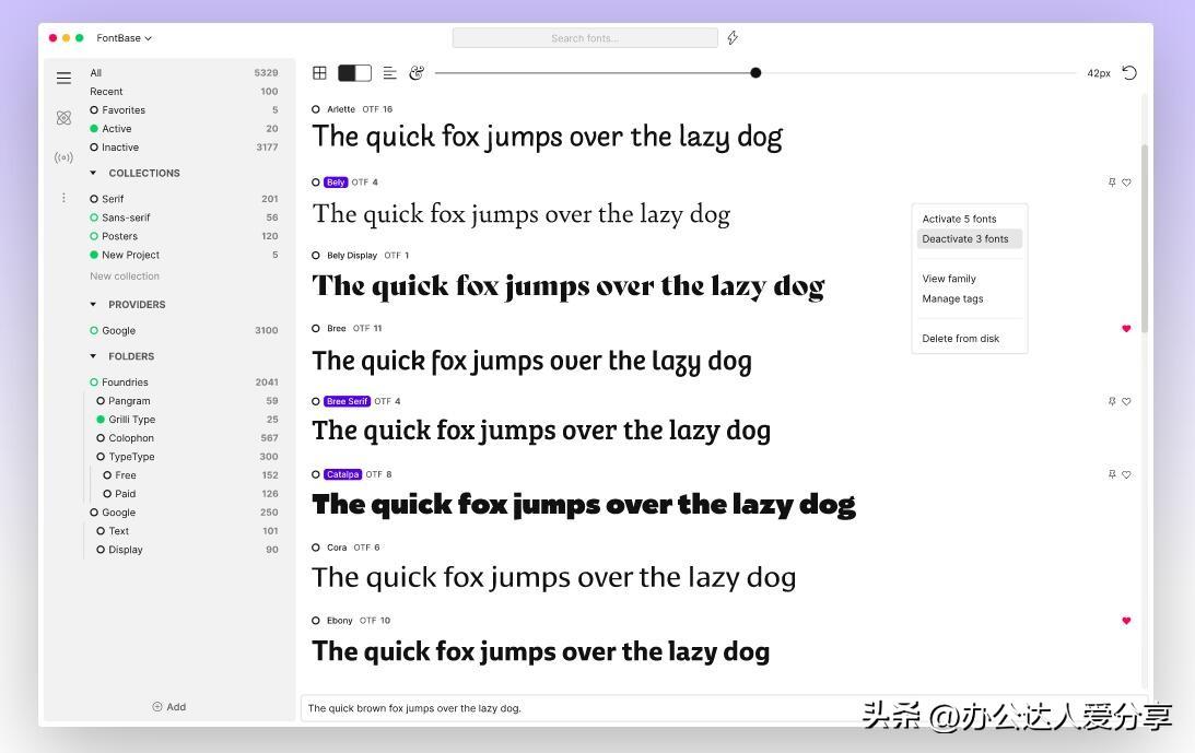 一个很棒的macOS字体管理器,可以为您的设计选择完美的字体。该软件具有可自定义预览的灵活网格,方便让您概览您的库,并轻松找到适合的字体。