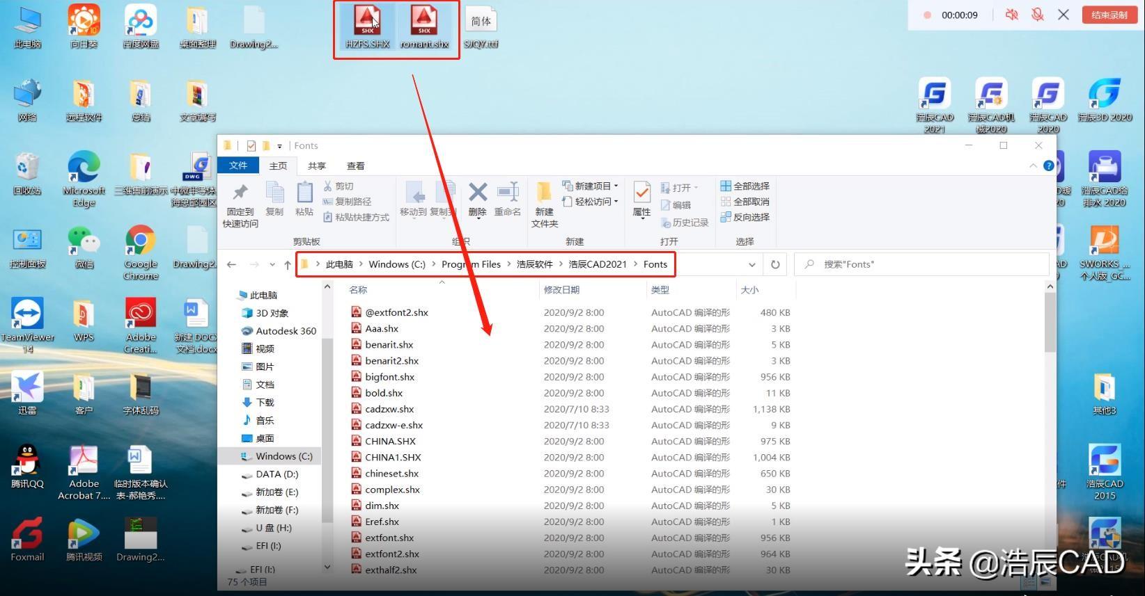 浩辰CAD软件安装路径下的「Fonts」文件夹,如图所示。