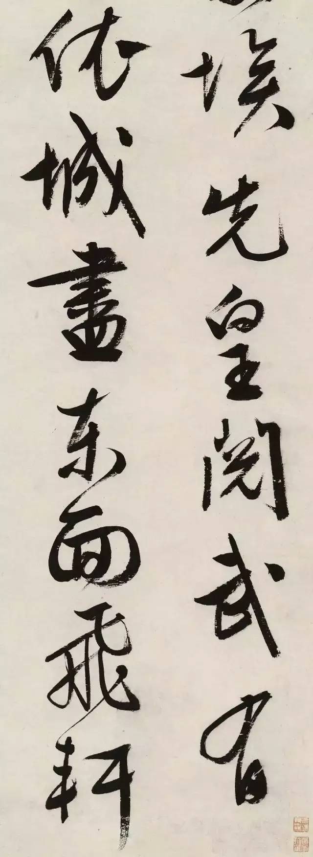 文徵明晚年书写得最多的自作诗大概是《早朝诗》及《游西苑诗》了。两组诗,忠实地记录了他在北京任职时朝见、游览皇宫后苑的所见所历,抒写了他对皇室的崇敬仰慕之情。尽管他倦于做官思乡不置,并最终辞职返乡,但短短数年的居京生活,还是让他终身难忘,并不断地用各种书体或卷、或册、或轴书写出来以赠同好及家藏。此轴即《游西苑诗》中之一首——《平台》。行书大字,是他典型的书体,出于"二王",而益以劲利遒媚,在规矩方圆之中显出他的潇洒与圆熟。