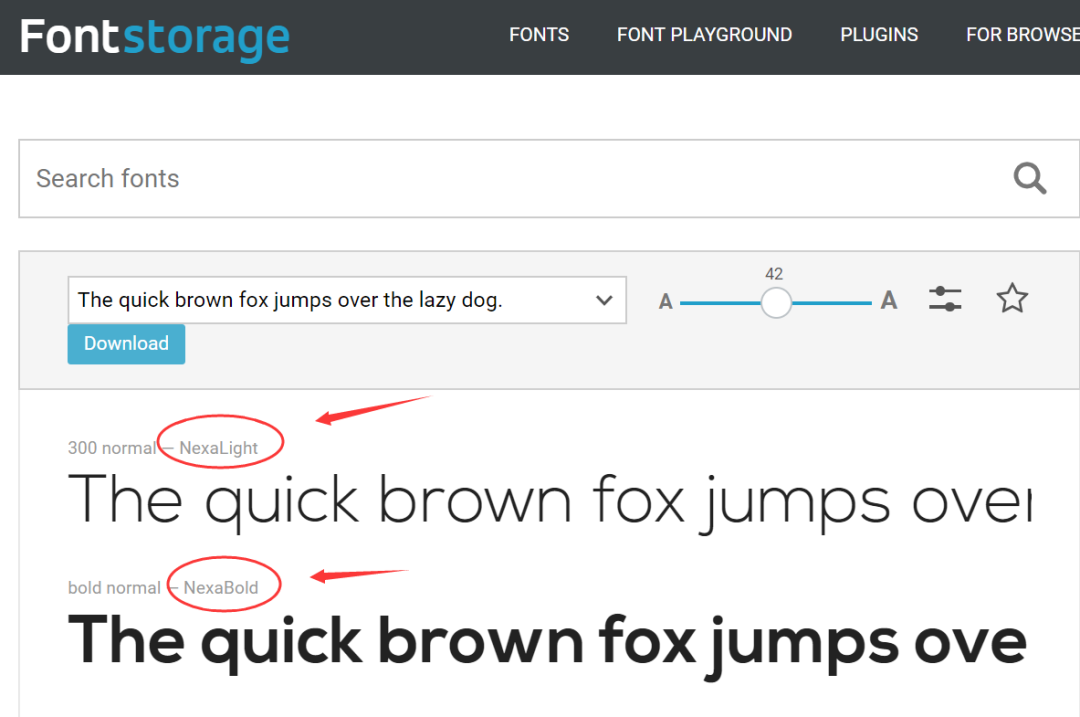 有一个免费字体网站fontstorage.com,如上图,声称“Collection of free fonts for your websites”,布衣公子又前往该网站来测试一下,发现可以搜到并下载“Nexa light”和“Nexa Bold”,却找不到Arial这个字体。