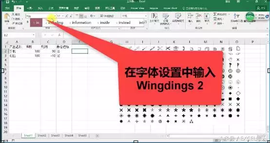 Wingdings 2的字体是excel中的特殊字体,采用这种字体后,可以在excel中输出很多特殊的符号,例如六芒星和钟表等等,我们选中单元格,在字体设定中输入Wingdings 2,然后点击回车。