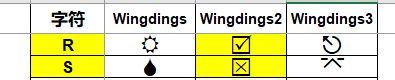 wingdings字体还是比较好玩的,如果想用其中一些有趣的字符,只需要输入对应的字符,再设置成对应的wingdings字体就可以了,不知大家注意到没有,R和S对应的Wingdings2字体,显示的是带框的对号和错号,这个在Excel中会用到,但是输入起来就比较麻烦了,这时就可以利用Wingdings2字体来实现了,先把数据区域设置成wingdings2字体,再输入R或者S就可以了
