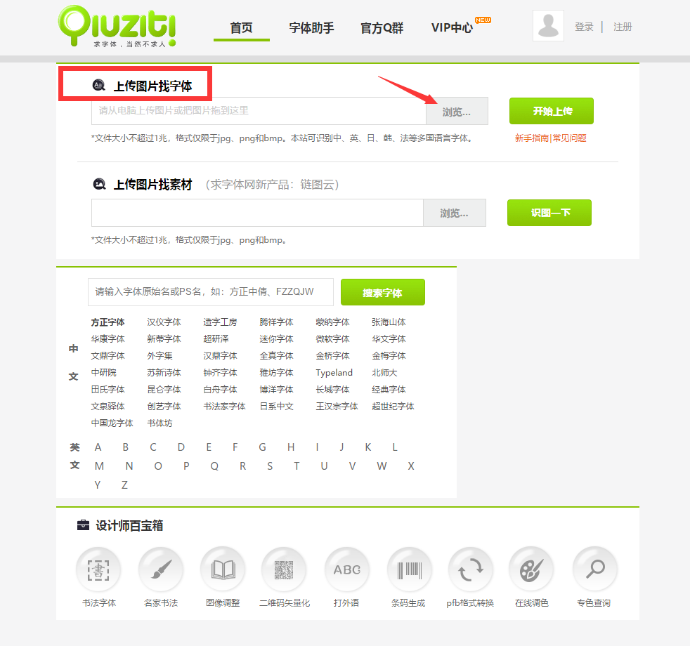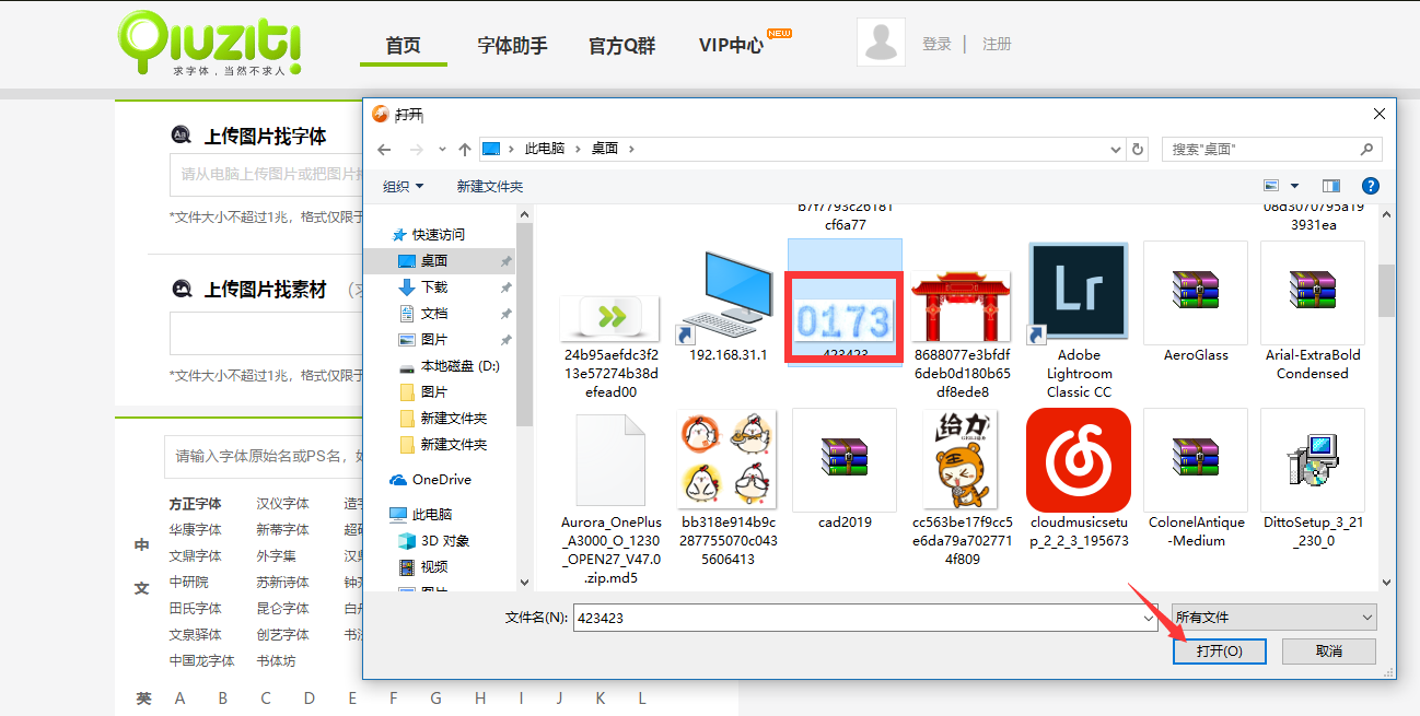 或者您想找一张图片上的字体,点击浏览