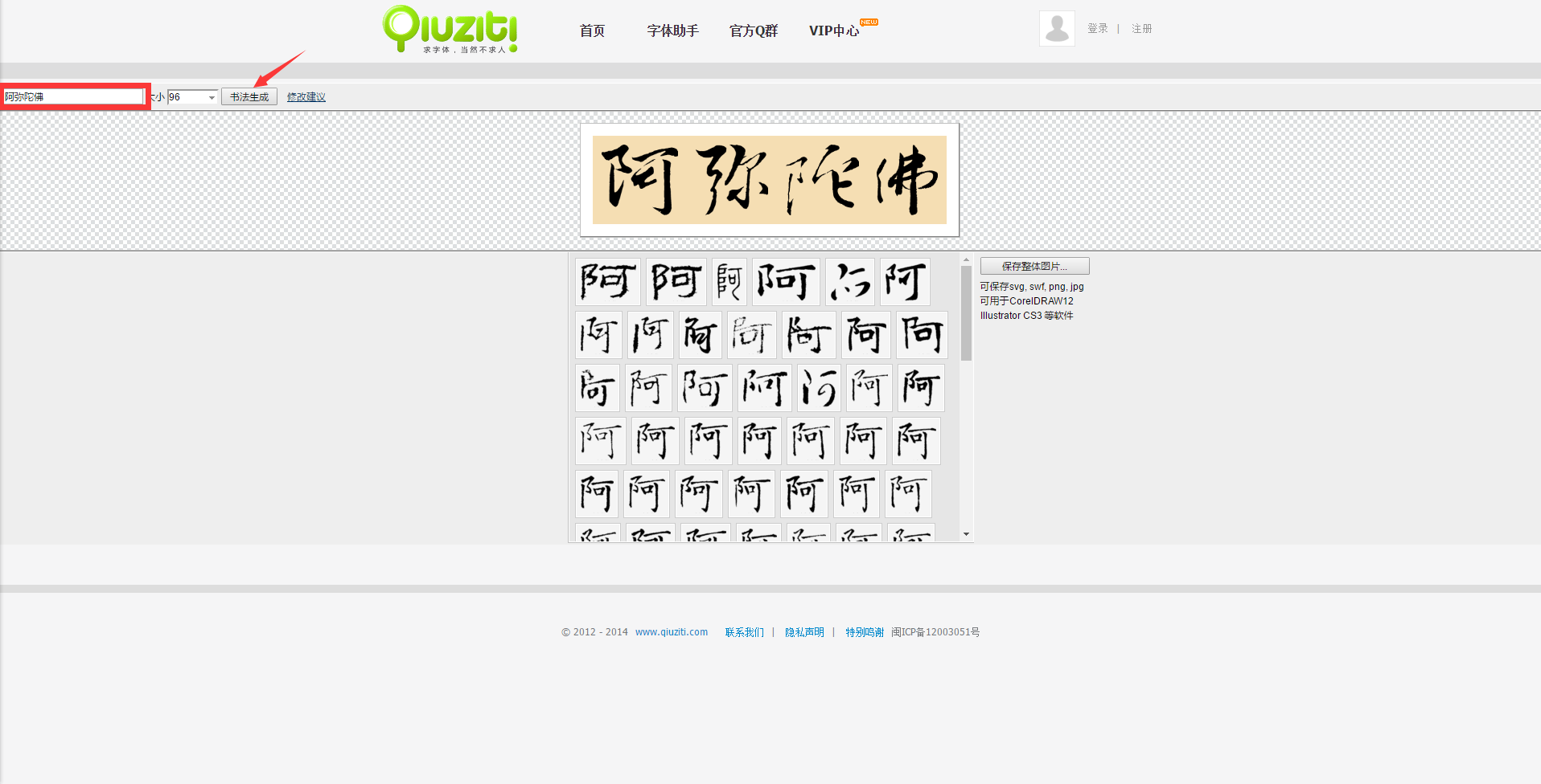 输入您想生成的书法体,然后点书法生成