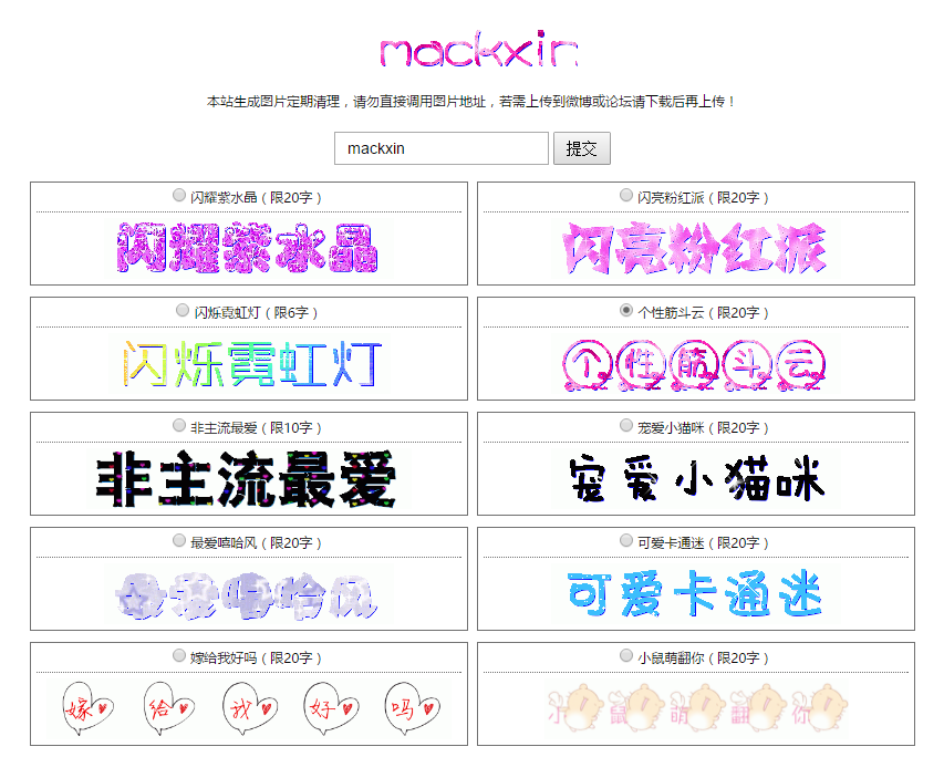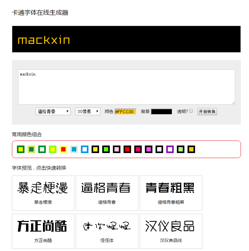 可以在先预览效果,更改颜色,但是只能生成PNG格式的图片。