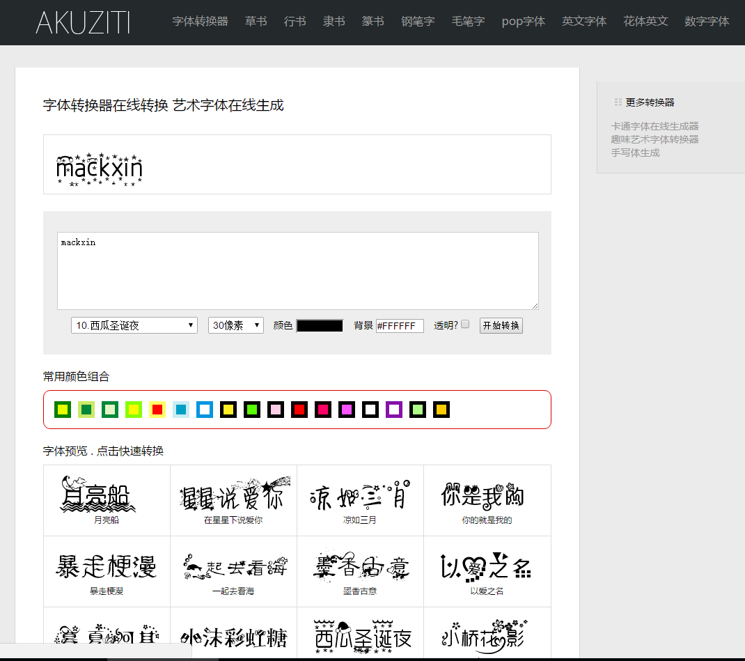 是一个自动生成字体的网站,直接选字体,以及字体大小,还有背景