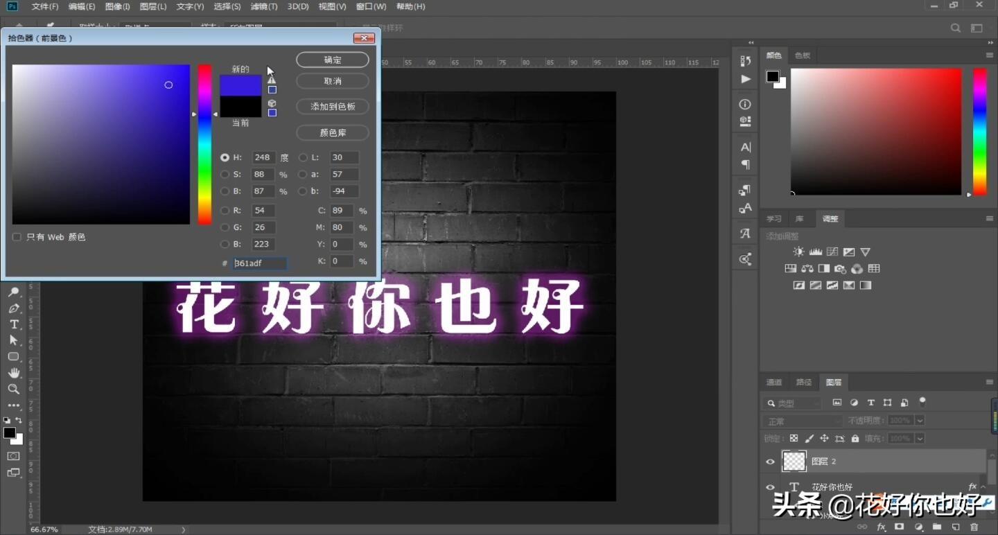 然后直接给文字上添加图层样式,所谓图层样式,就是“fx”,在PS的右下角